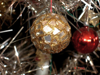 - use cola quente e vá fixando as pastilhas na volta da bolinha, inclusive sobre a fita crepe;